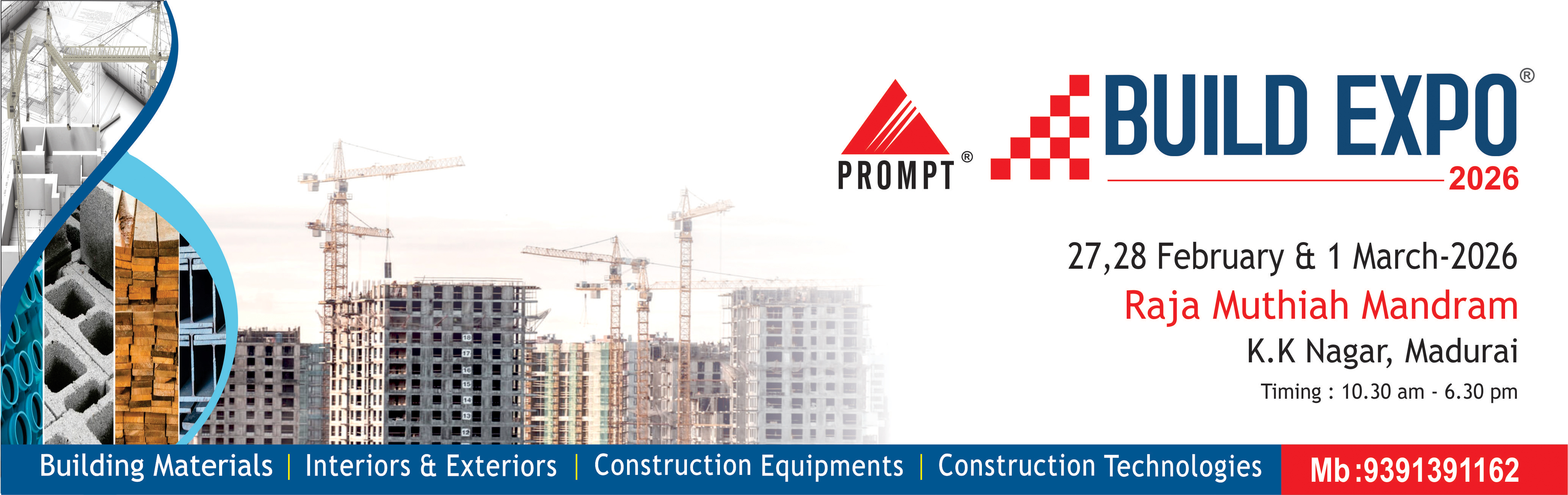 PROMPT has organized over 1200+ Exhibitions in varied segments including Building & Construction Material Expos, Architecture & Home Interior Expos, Property Fairs, Educational Fairs, Interior & Exterior Expos. Prompt has carved a niche for itself by raising the bar of the Consumer Shopping Exhibitions organized in South India in locations including Chennai, Bangalore, Hyderabad, Ahmedabad, Nasik, Coimbatore, Erode, Salem, Pondicherry, Neyveli, Tirupathi, Vijayawada, Visakhapatnam, Warangal, Guntur, Rajahmundry & Nellore.